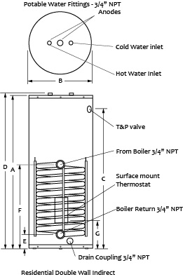 Heat Flo Hf 40 Stainless Steel Indirect Water Heater Tank 1 Heat Exchanger